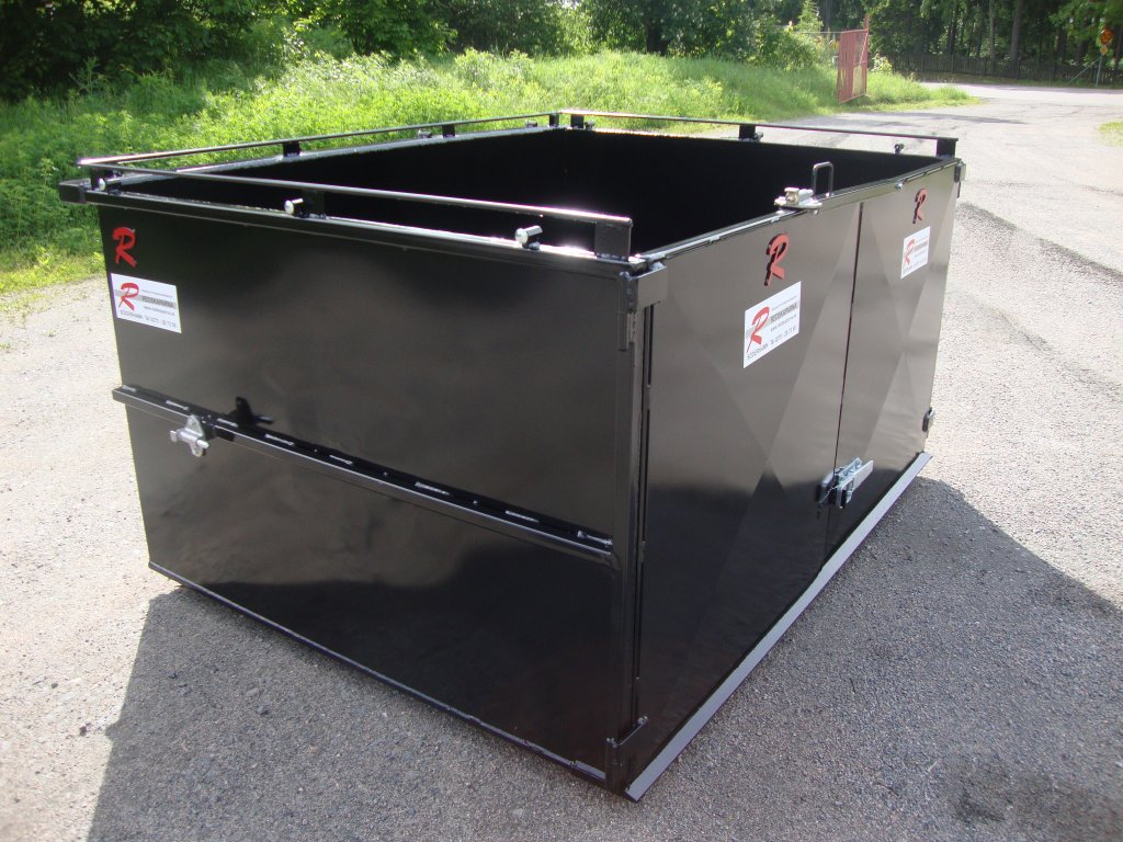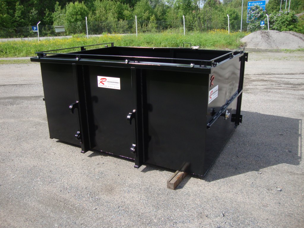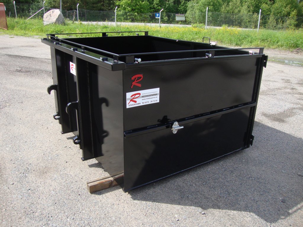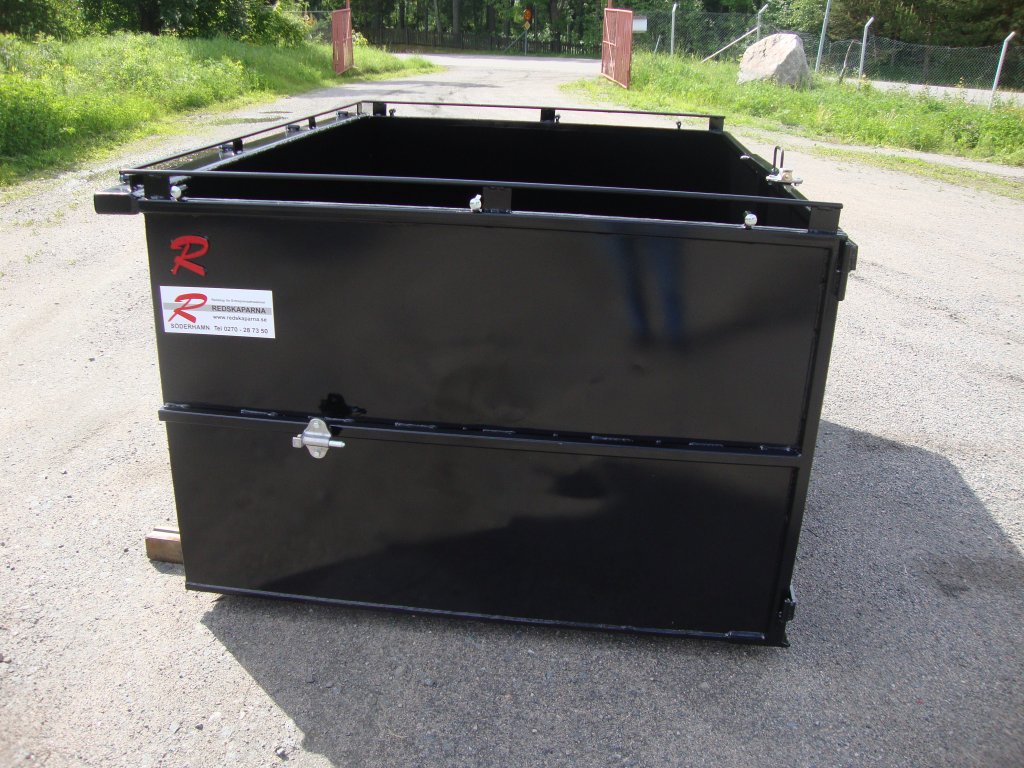 En container som är anpassad för bostadsbolag för transport av allt från spisar och kylskåp till sopor och löv. Containern har ett skärstål i framkant så att det går lätt att tex köra in en kärra med en spis eller att kratta in löv. Luckorna kan låsas mot gaveln vid behov. Det finns gott om möjligheter att fästa spännband eller lastnät över containern.