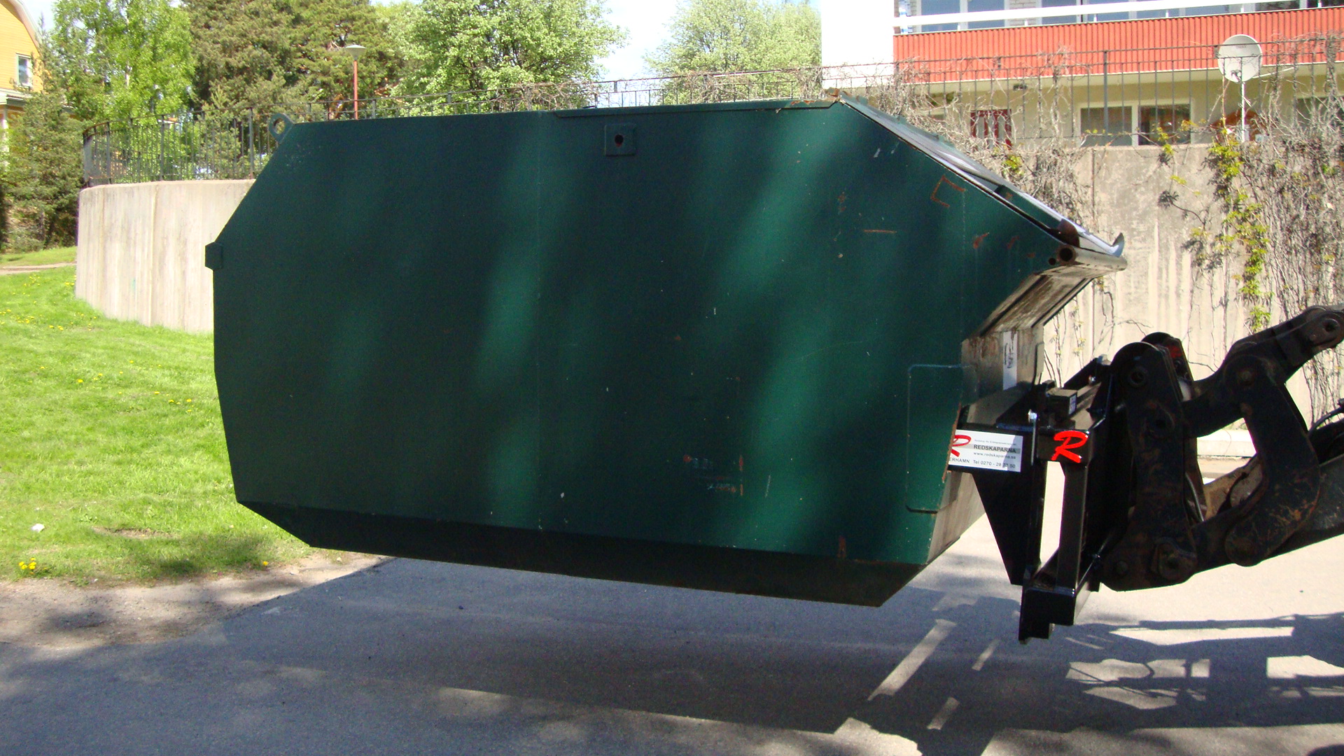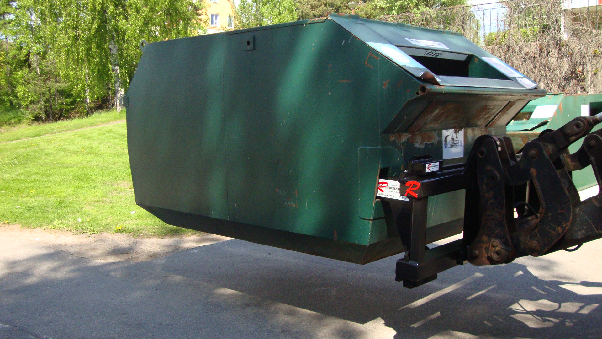Redskaparnas containerlyft är designad för säker och effektiv hantering av återvinningscontainers och andra containertyper. Den robusta konstruktionen i kombination med flexibla inställningar gör att containerlyften enkelt kan anpassas till olika arbetsmiljöer och containermodeller.