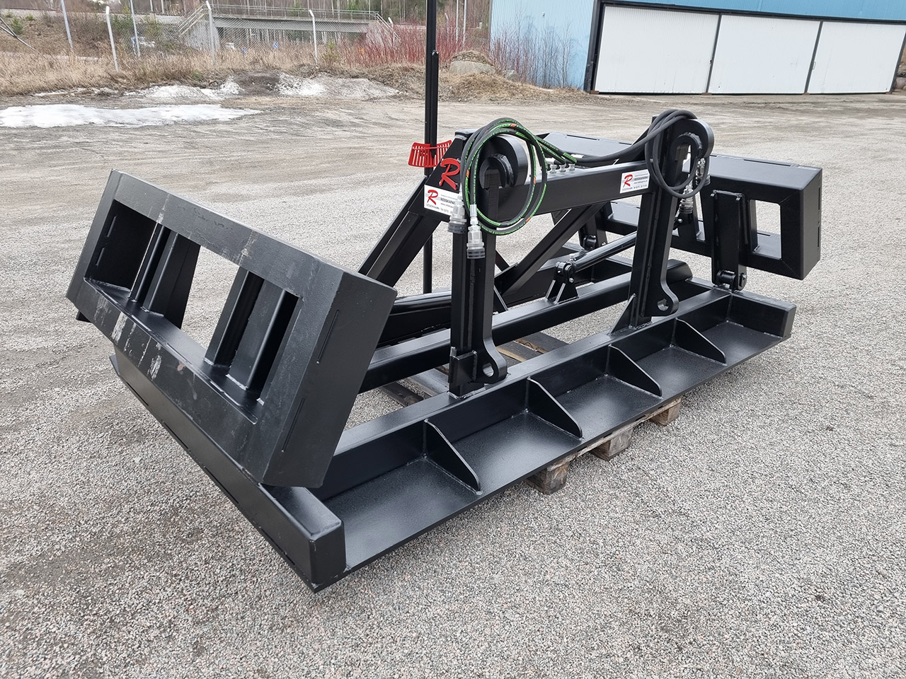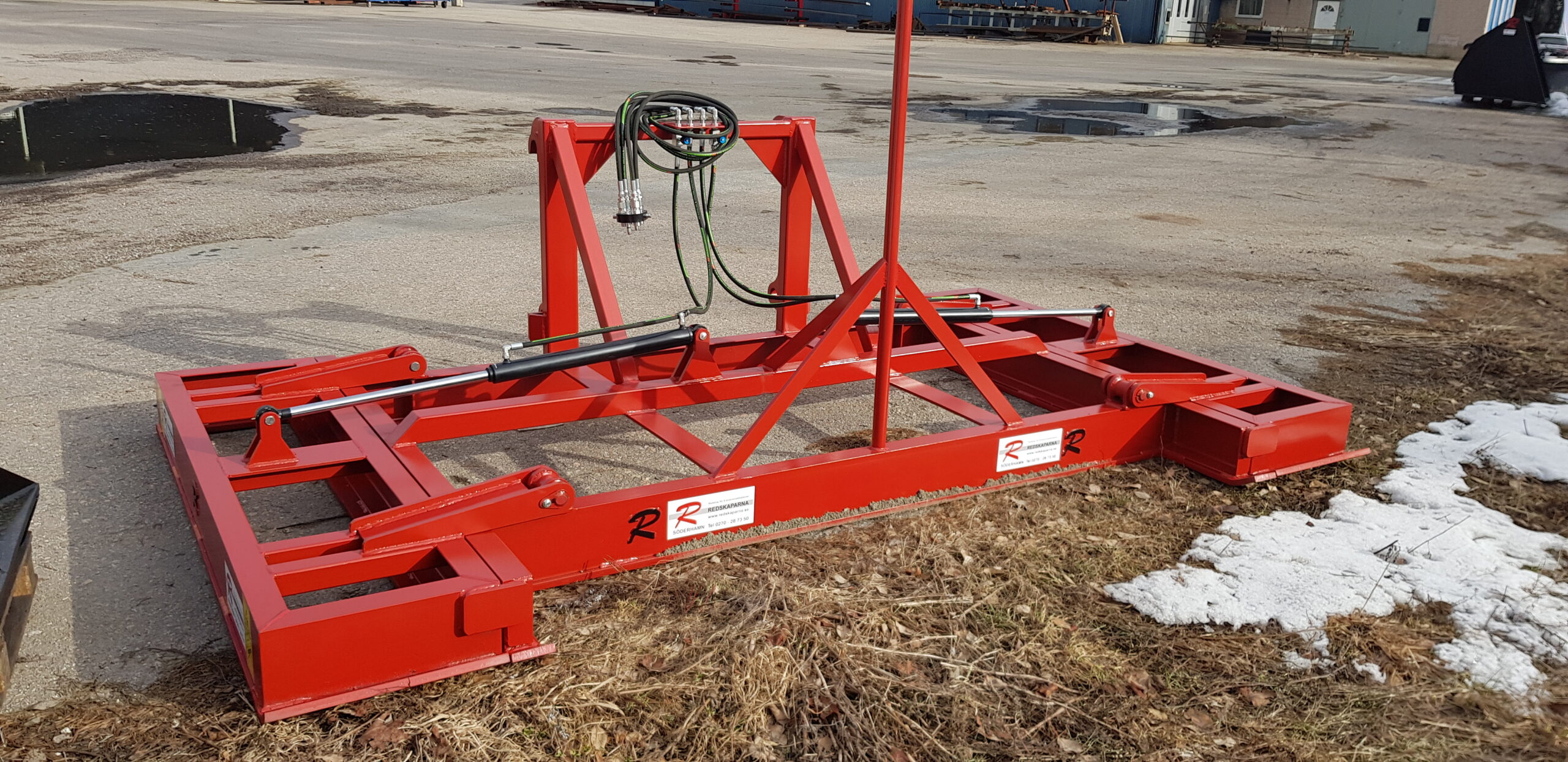 Avjämningsbalken har nedfällbara sidor. Vi har även en variant med fällbara sidor. Bredden ökar med 1 m när de fälls ner. Den väldigt lämplig för stora ytor och för att påbörja slänter eller ränndalar för vattenavrinning.