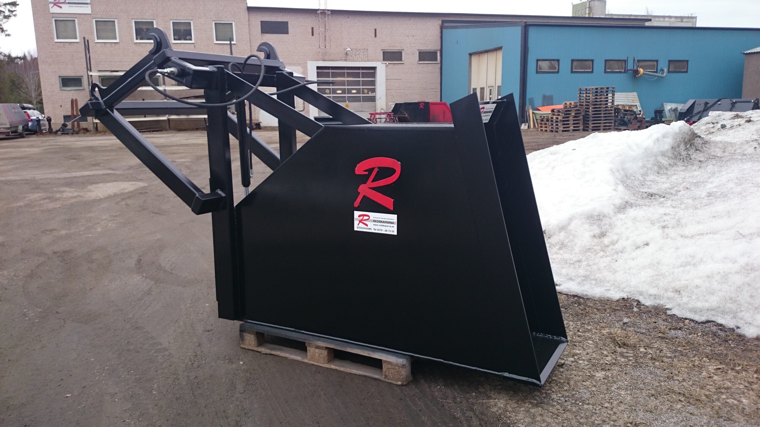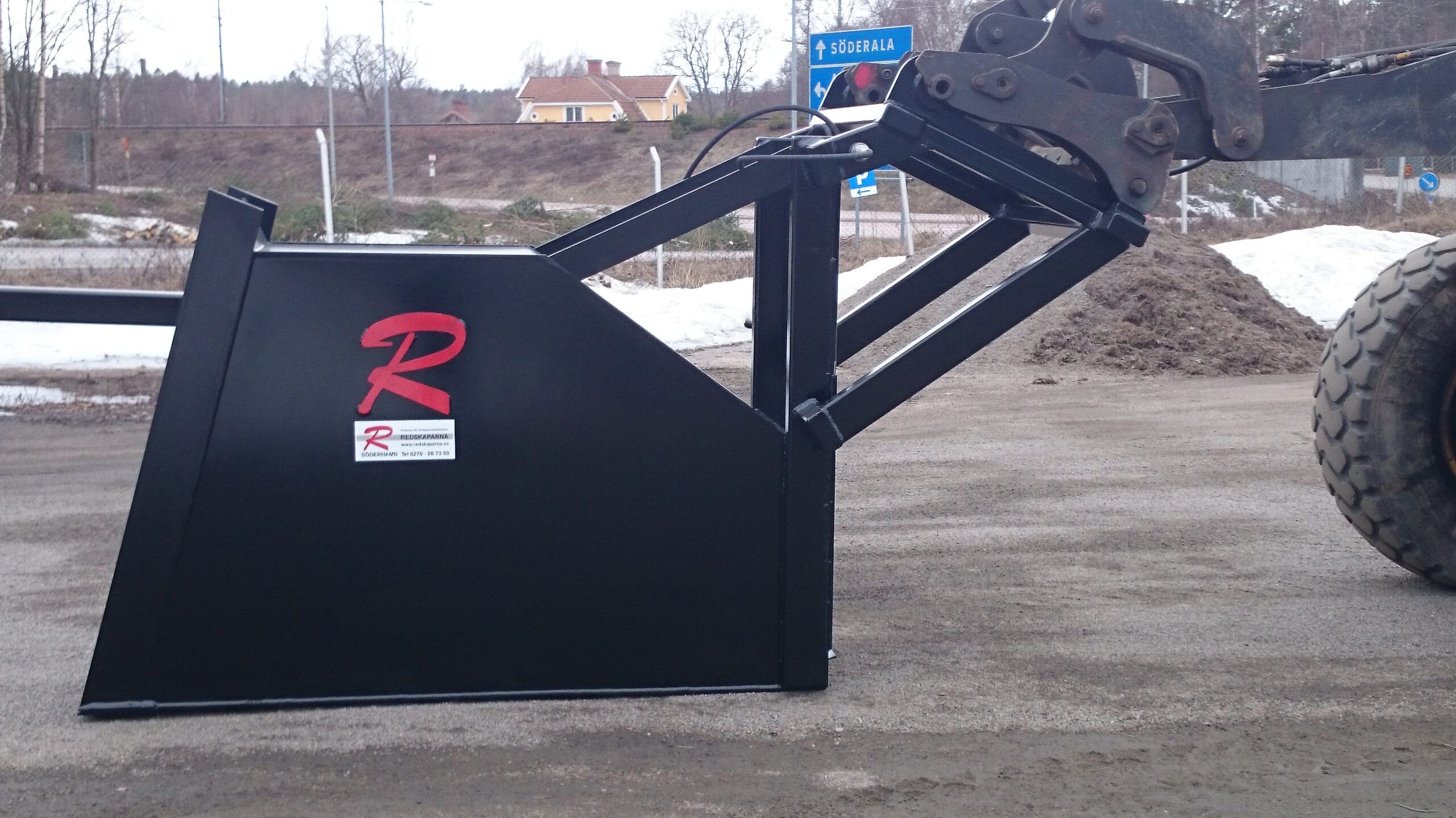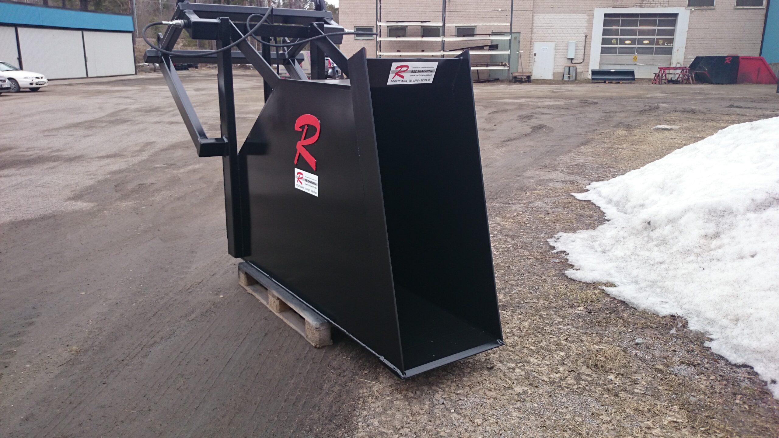 En Bulkskopa från Redskaparna för jord och gruslastning. Skopan rymmer 1250 liter. Den är 600 mm bred och har raka sidor för att minska risken att jorden hakar upp sig.