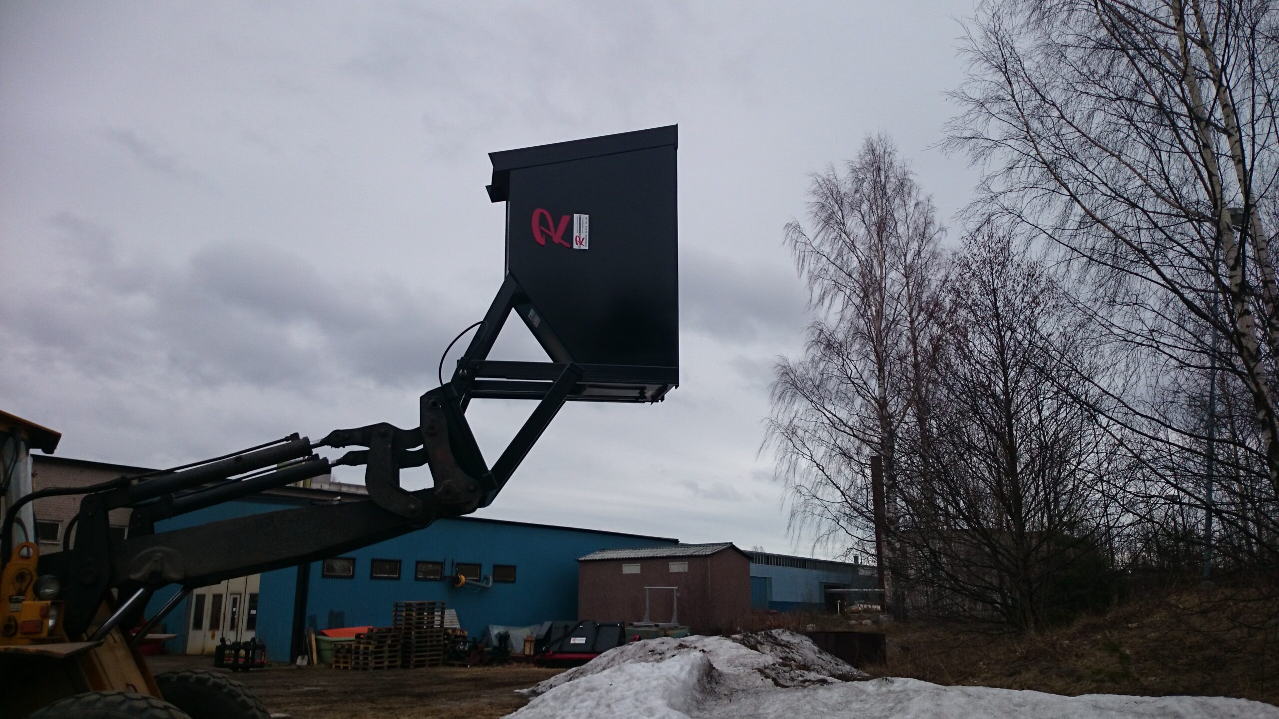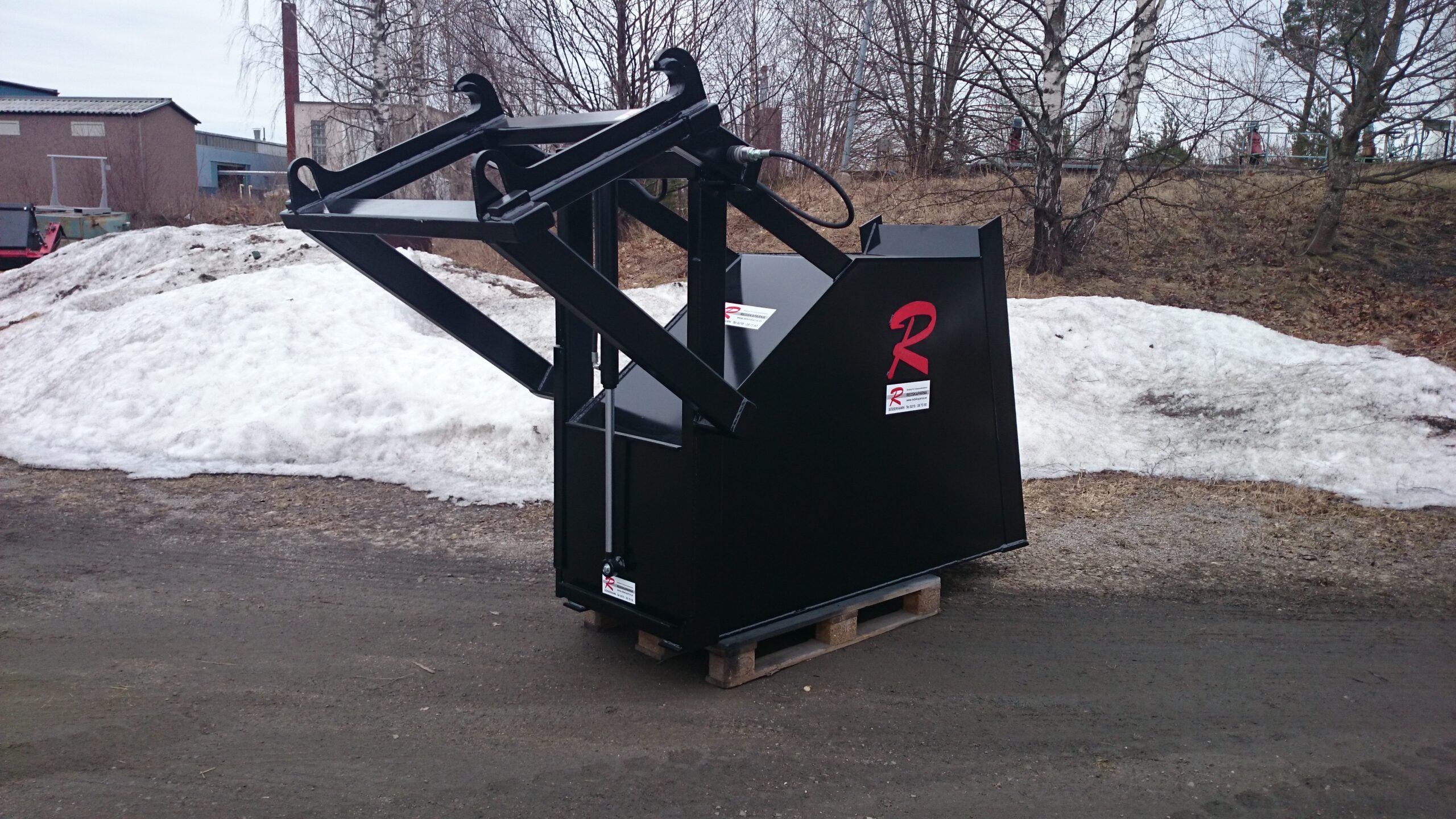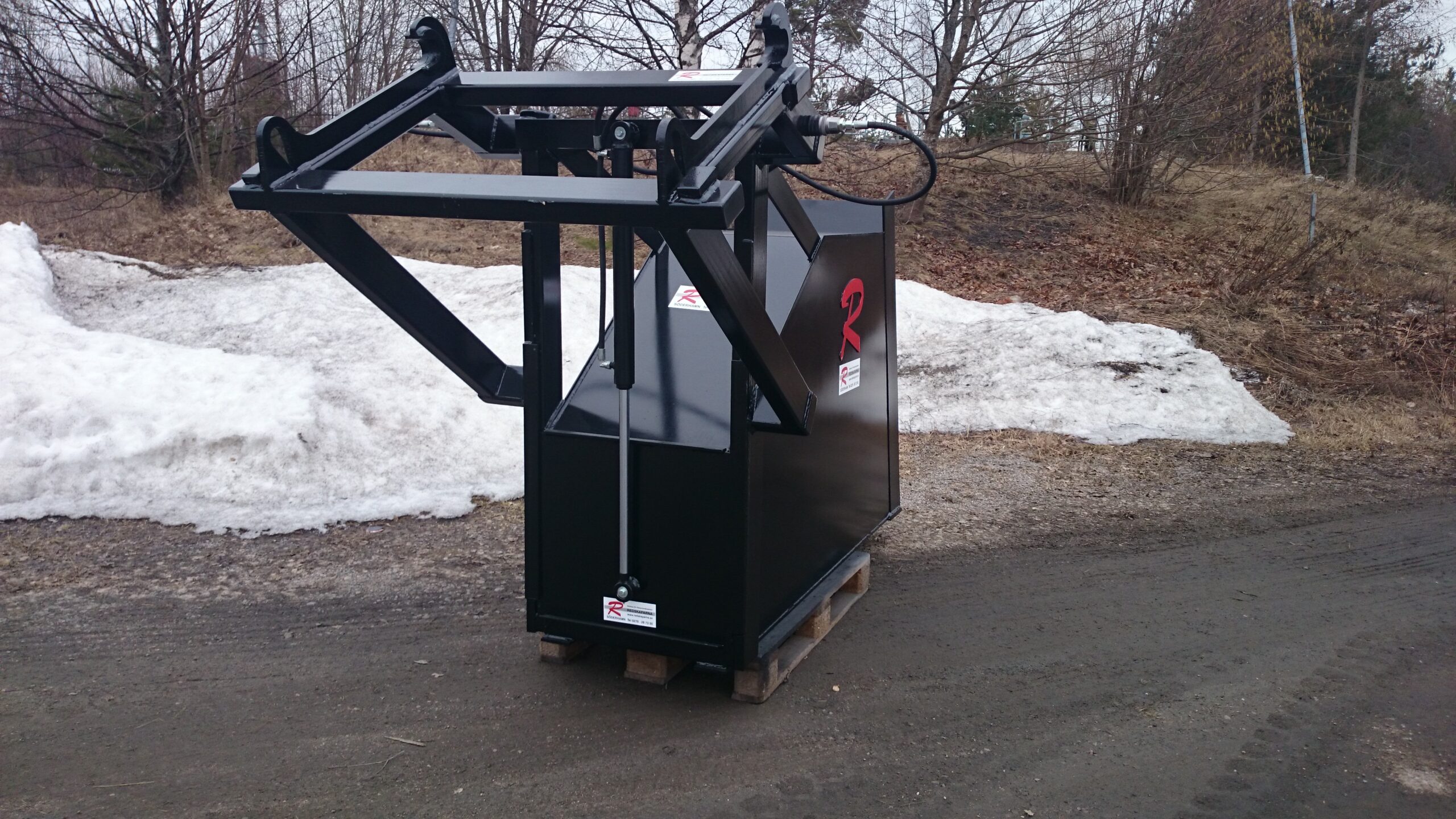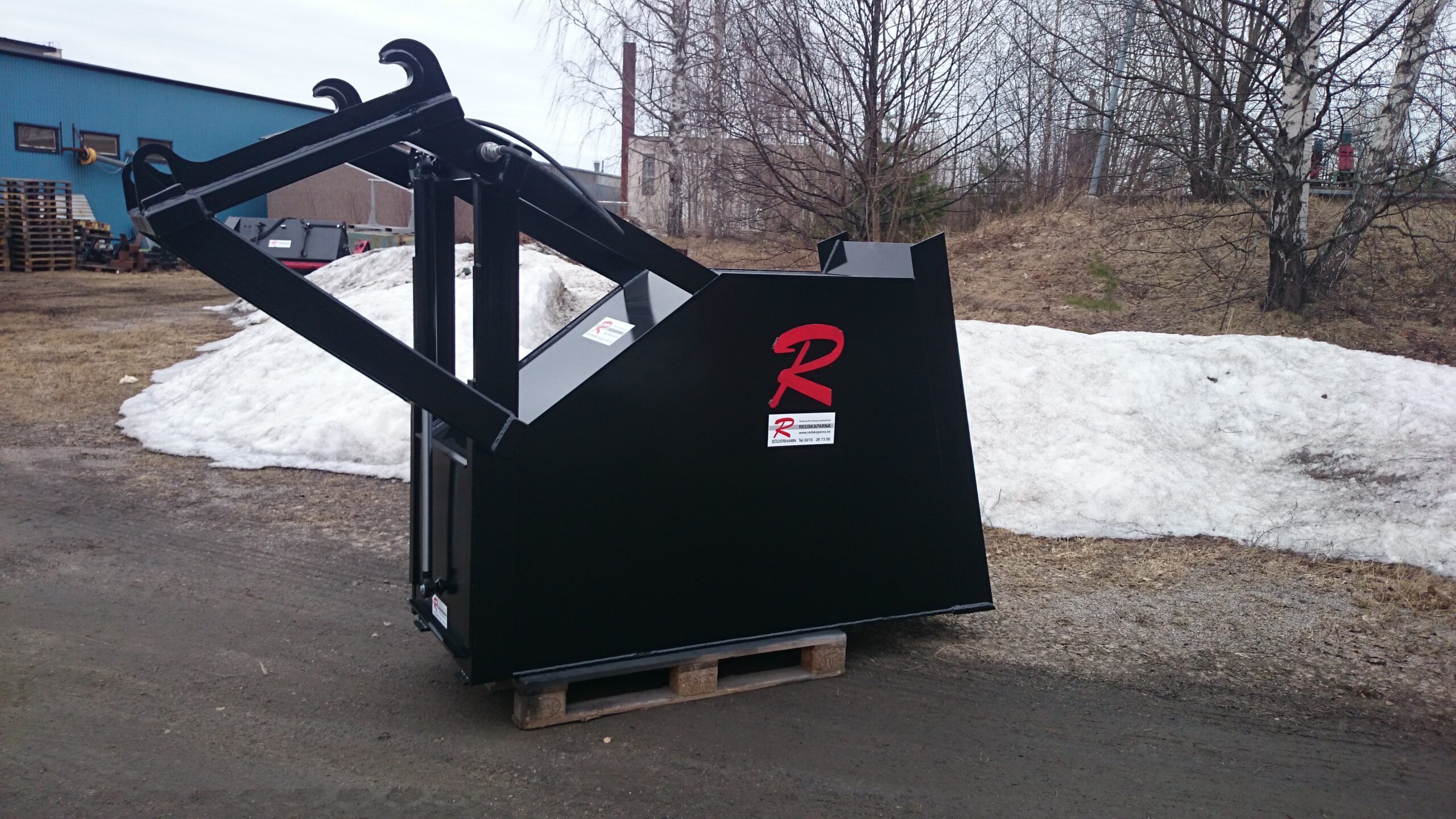 En Bulkskopa från Redskaparna för jord och gruslastning. Skopan rymmer 1250 liter. Den är 600 mm bred och har raka sidor för att minska risken att jorden hakar upp sig.