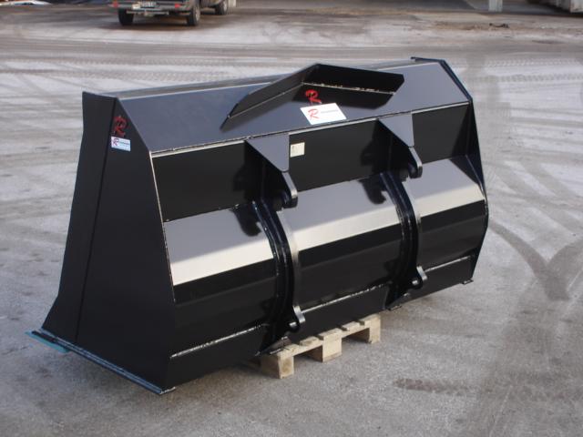 Anpassad för hantering av tunga material som grus och sten. Kompakt konstruktion för effektiv lastning och tåligt skärstål för lång livslängd.